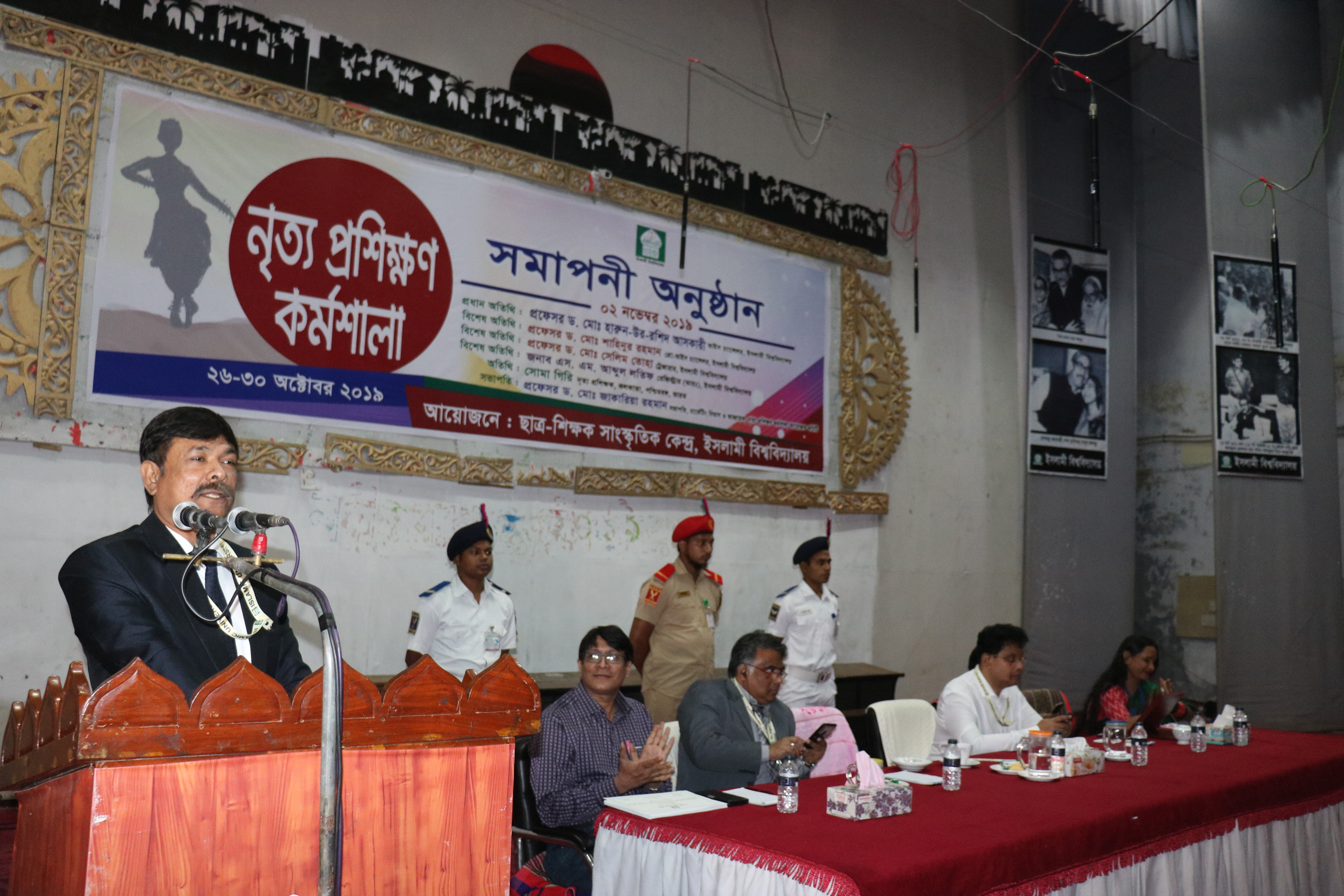 পাঁচ দিনব্যাপী নৃত্য প্রশিক্ষণ কর্মশালার সমাপনী অনুষ্ঠানে বীরশ্রেষ্ঠ হামিদুর রহমান মিলনায়তনে কর্মশালার আহ্বায়ক অধ্যাপক ড. জাকারিয়া রহমান এর সভাপতিত্বে প্রধান অতিথি ছিলেন উপাচার্য অধ্যাপক ড. মোঃ হারুন উর রশিদ আসকারী। বিশেষ অতিথি ছিলেন উপ-উপাচার্য অধ্যাপক ড. শাহিনুর রহমান, কোষাধ্যক্ষ অধ্যাপক ড. সেলিম তোহা, ভারপ্রাপ্ত রেজিস্ট্রার এস এম আব্দুল লতিফ ও সোমা গিরি। পরে প্রশিক্ষণার্থীদের মাঝে সনদ প্রদান করা হয়।