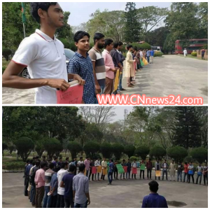 মানববন্ধনে সাধারণ শিক্ষার্থীরা ‘সান্ধ্যকালীন কোর্স একাডেমিক কাউন্সিলে আবার কেন প্রশাসন জবাব চাই,শিক্ষার্থী নিয়ে বাণিজ্যনীতি এইকি তবে শিক্ষানীতি, ইভিনিং শিক্ষার্থীদের জন্য বিষফোঁড়, আচার্য চায়না উপাচার্য তবে কেন?,টাকার বিনিময়ে সনদ বিক্রি বন্ধ করো করতে হবে।’ লিখিত প্ল্যাকার্ড নিয়ে মানববন্ধনে অংশগ্রহণ করে।