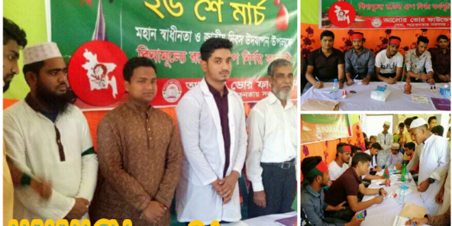 ২৬ শে মার্চ মহান স্বাধীনতা ও জাতীয় দিবস উপলক্ষ্যে, কুমিল্লা নাঙ্গলকোট উপজেলার জোড্ডা পশ্চিম’র এতিহ্যবাহি নোয়াপাড়া সরকারি প্রাথমিক বিদ্যালয় প্রাঙ্গনে মানবিক সংগঠন আলোর ভোর ফাউন্ডেশন এর উদ্যোগে অনুষ্ঠিত হয়েছে “বিনামূল্য রক্তের গ্রুপ নির্ণয় কর্মসূচি ” ২০১৯।