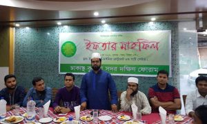 হাবিবুল হাসান সাইমনের সভাপতিত্বে ও বিল্লাল হোসাইনের পরিচালনায় ইফতার মাহফিলে প্রধান অতিথি হিসেবে উপস্থিত ছিলেন সাবেক ছাত্রনেতা, মুহাম্মদ ইয়াছিন আরাফাত। এতে আরো উপস্থিত ছিলেন বিশিষ্ট ইসলামি চিন্তাবিদ মাওলানা মামুন হোসাইন হাবিবী, আবু কাওসার সুমন, মোবারক হোসাইন, শরিফুল ইসলাম ও সাইফুল ইসলাম প্রমুখ।