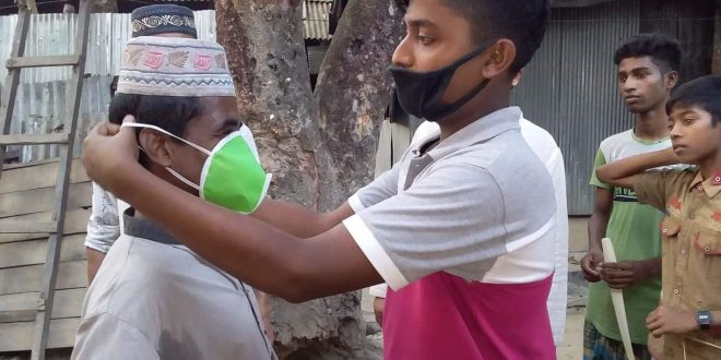 কুমিল্লার নাঙ্গলকোট উপজেলার ঢালুয়া ইউনিয়নের মোগরা সমাজ কল্যাণ সংস্থার উদ্যোগে গ্রামের অসহায়দের মাঝে মাস্ক ও সাবান বিতরণ করে একঝাঁক মেধাবী তরুণ। সংগঠনের সদস্যরা তাদের মাস্ক পরিয়ে দেন এবং তাদের সচেতন করেন।