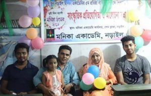 নড়াইলে মনিকা একাডেমির ষষ্ঠ প্রতিষ্ঠা বার্ষিকী উপলক্ষে শিশুদের চিত্রাঙ্কন প্রতিযোগিতা, কবি-সাহিত্যিকদের স্বরচিত কবিতা পাঠ, ছোটগল্প লেখা ও কুইজ প্রতিযোগিতা অনুষ্ঠিত হয়েছে। শনিবার (১৩ জুন) শহরের পুরাতন বাস টার্মিনাল এলাকায় একাডেমী কার্যালয়ে ভাইরাসের কারণে সামাজিক দূরত্ব বজায় রেখে সীমিত আকারে এসব অনুষ্ঠান পালিত হয়।