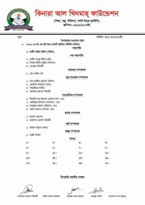 কুমিল্লার নাঙ্গলকোটের কিনারা আল খিদমাহ ফাউন্ডেশনের জুনিয়র কমিটি ঘোষণা করা হয়েছে। এতে কাজী নাজিম উদ্দিনকে সভাপতি, মোঃ সজিব খানকে সাধারণ সম্পাদক , ইমরান নিয়াজীকে সংগঠনিক সম্পাদক ও জাবেদ খান কে প্রচার সম্পাদক করে, কিনারা আল খিদমাহ্ ফাউন্ডেশনের দুই বছর মেয়াদে জুনিয়ার কমিটির অনুমোদন দিয়েছেন জুনিয়ার কমিটির উপদেষ্টা পরিষদ।