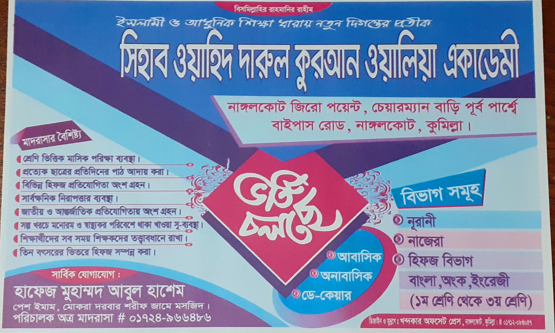 কুমিল্লার নাঙ্গলকোট জিরো পয়েন্ট ও কালু চেয়ারম্যান বাড়ির পূর্ব পাশে বাইপাস রোড সংলগ্ন অবস্থিত ইসলামী ও আধুনিক শিক্ষা ধারায় নতুন দিগন্তের প্রতীক সিহাব ওয়াহিদ দারুল কুরআন ওয়ালিয়া একাডেমীর শুভ উদ্বোধন ও সবক প্রদান অনুষ্ঠান অনুষ্ঠিত।