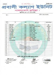 নাঙ্গলকোট প্রবাসী কল্যাণ ইউনিটের ৯১ সদস্য বিশিষ্ট নতুন কমিটি অনুমোদন দেয়া হয়েছে।