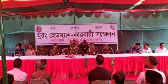 প্রধান অতিথি তার বক্তব্যে জানান – বাংলাদেশ সেনাবাহিনীর সাথে কাজ করে যাচ্ছে মুরুংরা এছাড়াও পাহাড়ের সন্ত্রাস দমনে বাংলাদেশ সেনাবাহিনীকে দীর্ঘ দিন ধরে ঐকান্তিক ভাবে সহযোগীতা করে আসছে। তিনি আরো বলেন মুরুংদের কে সুশিক্ষিত এবং শিক্ষিত করার জন্য বাংলাদেশ সেনাবাহিনী সব সময় ঐকান্তিক ভাবে চেষ্টা করে যাচ্ছে এবং ইতিমধ্যে বাংলাদেশের বিভিন্ন ডিপার্টমেন্টে এই সম্প্রদায়ের ছেলেরা সরকারি চাকরি করছে।