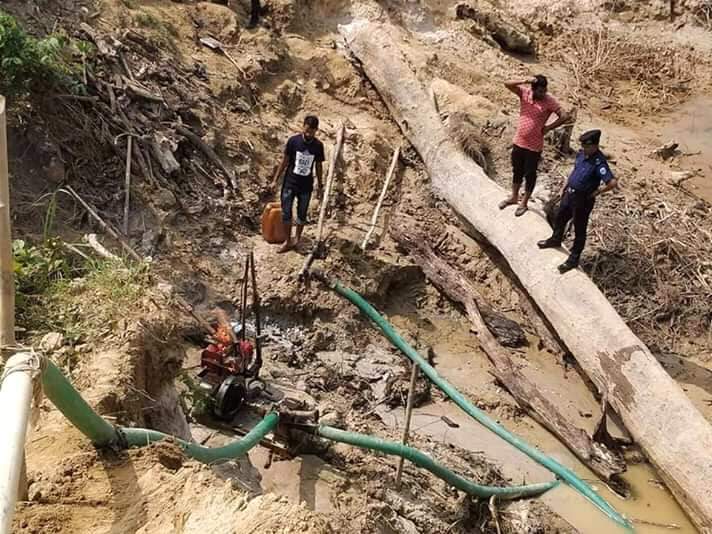 বান্দরবানের লামা উপজেলায় অবৈধ ভাবে বালু উত্তোলনে ২টি ড্রেজার মেশিন পুড়িয়ে  দিয়েছে প্রশাসন