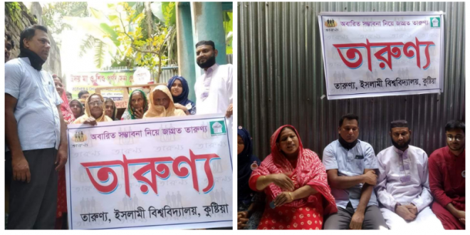 তারুণ্যের সাধারণ সম্পাদক সাদিয়া আফরিন খানের সঞ্চালনায় এসময় উপস্থিত ছিলেন ইসলামী বিশ্ববিদ্যালয়ের সিন্ডিকেট সদস্য ও শাপলা ফোরামের সাধারণ সম্পাদক অধ্যাপক ড. মাহবুবর রহমান, উদয় মা ও শিশু পুনর্বাসন কেন্দ্রের প্রতিষ্ঠাতা চেয়ারম্যান এম ইফতিখার হোসেন মিঠু, তারুণ্যের সভাপতি শেখ রাইয়ান উদ্দিন, তারুণ্যের সাবেক সাধারণ সম্পাদক তায়েব হোসেন জনি সহ তারুণ্যের অন্যান্য সদস্যরা।
