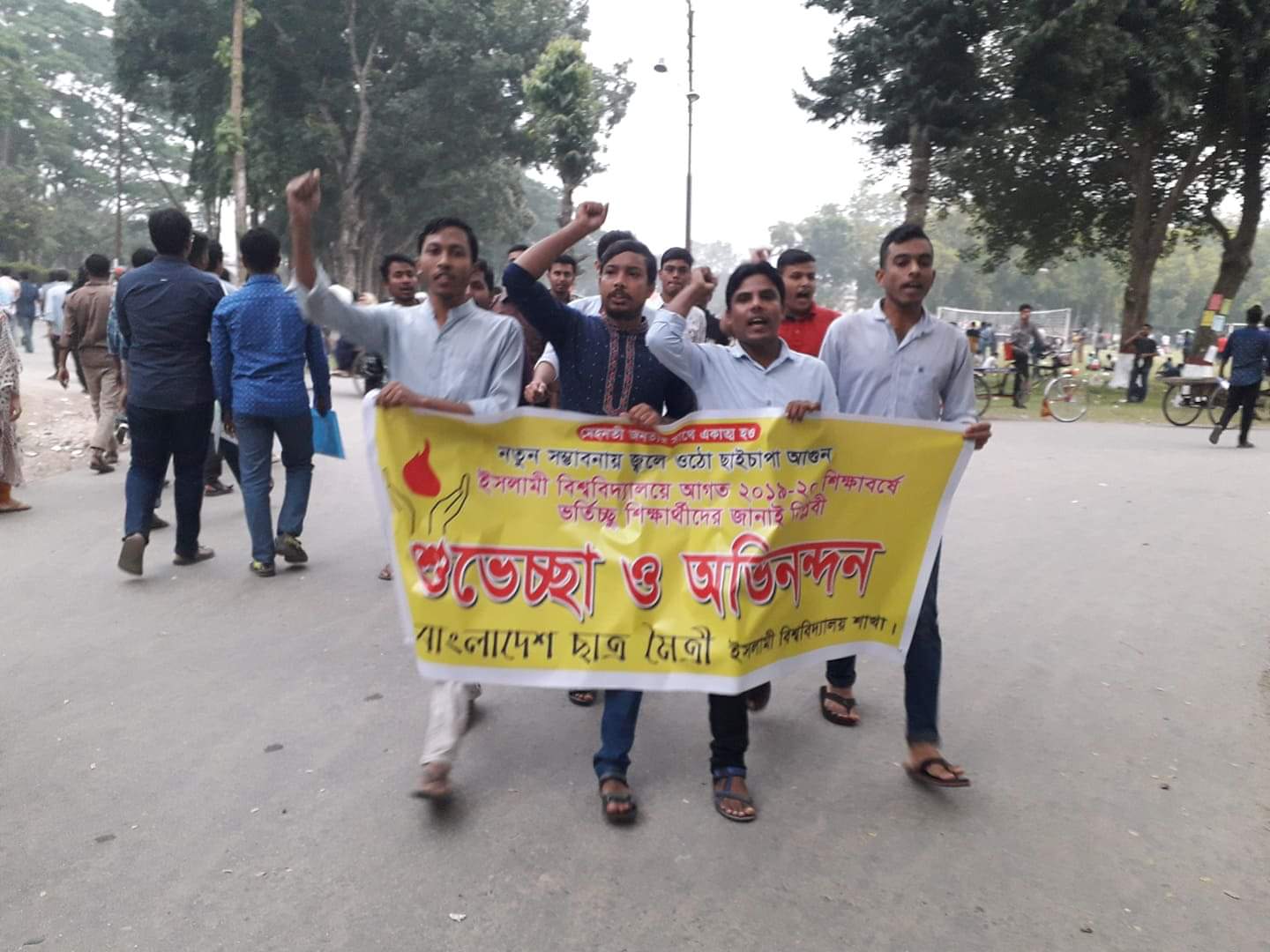 ইসলামী বিশ্ববিদ্যালয়ে (ইবি) ২০১৯-২০ শিক্ষাবর্ষে স্নাতক প্রথম বর্ষে ভর্তি পরীক্ষার্থীদের অভিনন্দন জানিয়ে আনন্দ মিছিল করেছে ইসলামী বিশ্ববিদ্যালয় শাখা ছাত্রলীগ, ছাত্র মৈত্রী ও ছাত্র ইউনিয়ন।