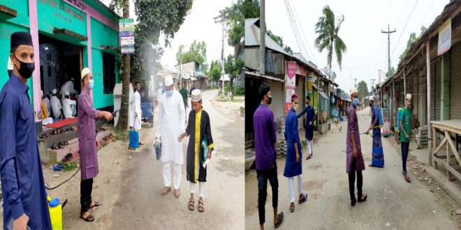 বৈশ্বিক মহামারী প্রাণঘাতী করোনা ভাইরাস পরিস্থিতিতে পবিত্র ঈদুল ফিতরে ঈদের নামাজে মসজিদে আগত মুসল্লিদের দায়েমছাতি নব জাগরণ সংঘের উদ্যোগে জীবাণুমুক্ত স্প্রে করছেন সংগঠনটির সদস্যরা। আজ সকালে নাঙ্গলকোট উপজেলার দায়েমছাতি কেন্দ্রীয় জামে মসজিদে মুসল্লিদের জীবাণুমুক্ত করে মসজিদে প্রবেশ করান। পরে পুরো বাজারে জীবাণুনাশক স্প্রে করেন এছাড়াও গতকাল রাতে দায়েমছাতি কেন্দ্রীয় মসজিদ পরিচ্ছন্ন করেন সংগঠনের সদস্যরা।