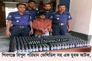 বগুড়ার শিবগঞ্জ থানা পুলিশের বিশেষ অভিযানে বিপুল পরিমান ফেন্সিডিল সহ এক যুবককে আটক করেছে।
