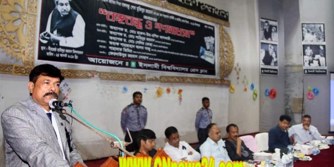 ইসলামী বিশ্ববিদ্যালয় প্রেস ক্লাবের সভাপতি ফেরদাউসুর রহমানের সভাপতিত্বে অনুষ্ঠিত আলোচনা সভায় বিশেষ অতিথি উপ-উপাচার্য অধ্যাপক ড. মোঃ শাহিনুর রহমান। প্রধান আলোচক ছিলেন বাংলাদেশ বেসরকারি শিক্ষা প্রতিষ্ঠান শিক্ষক-কর্মচারী কল্যাণ ট্রাস্টের সদস্য-সচিব, ইসলামী বিশ্ববিদ্যালয় প্রেস ক্লাব এবং ইসলামী বিশ্ববিদ্যালয় ছাত্রলীগের প্রতিষ্ঠাতা অধ্যক্ষ শাহজাহান আলম সাজু।