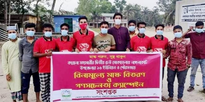 করোনা সংক্রামণ রোধে কুমিল্লার নাঙ্গলকোট উপজেলার ১৬ ইউনিয়ন ও পৌরসভায় একযোগে বিনামূল্যে মাস্ক বিতরণ ও গণসচেতনতা ক্যাম্পেইন গঠন করা হয়েছে। এই মহৎ কাজটি করছেন মানুষকে সহযোগিতা ও সচেতন করার লক্ষে গঠিন দেশের বিভিন্ন বিশ্ববিদ্যালয়ে অধ্যয়নরত নাঙ্গলকোট উপজেলার শিক্ষার্থীদের সেচ্ছাসেবী সংগঠন ‘সংশপ্তক’।