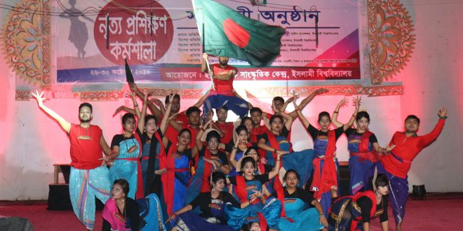 নিজস্ব প্রতিবেদকঃ ইসলামী বিশ্ববিদ্যালয়ে (ইবি) নৃত্য নাট্য ‘আমি স্বাধীনতা’ মঞ্চায়িত হয়েছে। কলকাতা থেকে আগত নৃত্য প্রশিক্ষক সোমা গিরির নির্দেশনায় শনিবার বীরশ্রেষ্ঠ হামিদুর রহমান মিলনায়তনে বিশ্ববিদ্যালয়ের শিক্ষার্থীদের অংশগ্রহণে এটি মঞ্চায়িত হয়েছে। ২৬ থেকে ৩০ অক্টোবর পর্যন্ত টিসসিসিতে নৃত্য প্রশিক্ষণ দেন কলকাতা থেকে আগত নৃত্য প্রশিক্ষক সোমা গিরি। ছাত্র শিক্ষক সাংস্কৃতিক কেন্দ্র …