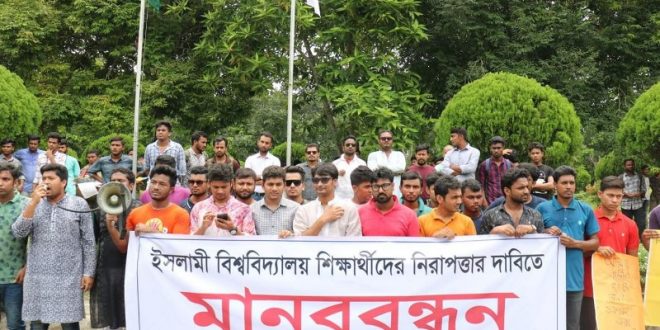 নিজস্ব প্রতিবেদকঃ ইসলামী বিশ্ববিদ্যালয়ের (ইবি) ইসলামের ইতিহাস ও সংস্কৃতি বিভাগের ১৩-১৪ শিক্ষাবর্ষের ছাত্র ও ছাত্রলীগকর্মী বিপুল হোসেনের ক্যাম্পাস পার্শ্ববর্তী বাড়ীতে (আনন্দনগর) ৩০ আগস্ট রাতে র্যাবের তল্লাশীর প্রতিবাদে ও সাধারণ শিক্ষার্থীদের নিরাপত্তার দাবিতে মানববন্ধন করা হয়েছে। শনিবার দুপুর ১২ টায় প্রশাসন ভবনের সামনে সাধারণ শিক্ষার্থীদের ব্যানারে শিক্ষার্থীদের নিরাপত্তার দাবিতে এ মানববন্ধন …